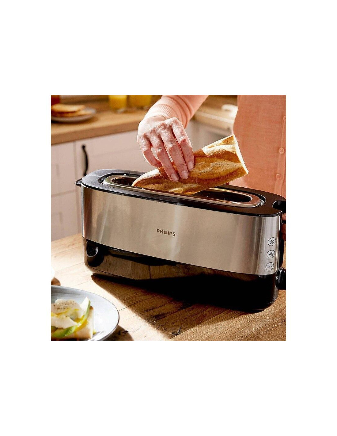 A single, long slot fits virtually any type of bread you choose.