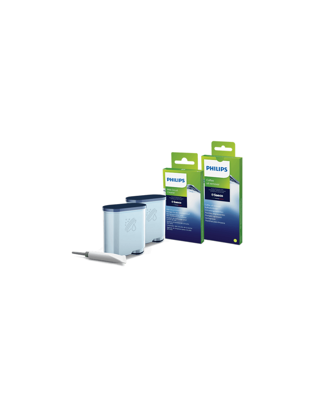 | Package Content | AquaClean filter cartridge x 2 Lubrication oil Milk circuit cleaner x 6 Oil remover x 6 |