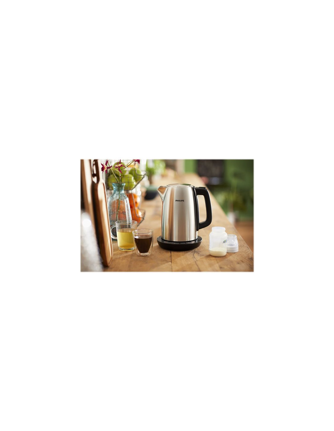 A concealed stainless steel heating element ensures fast boiling and easy cleaning.