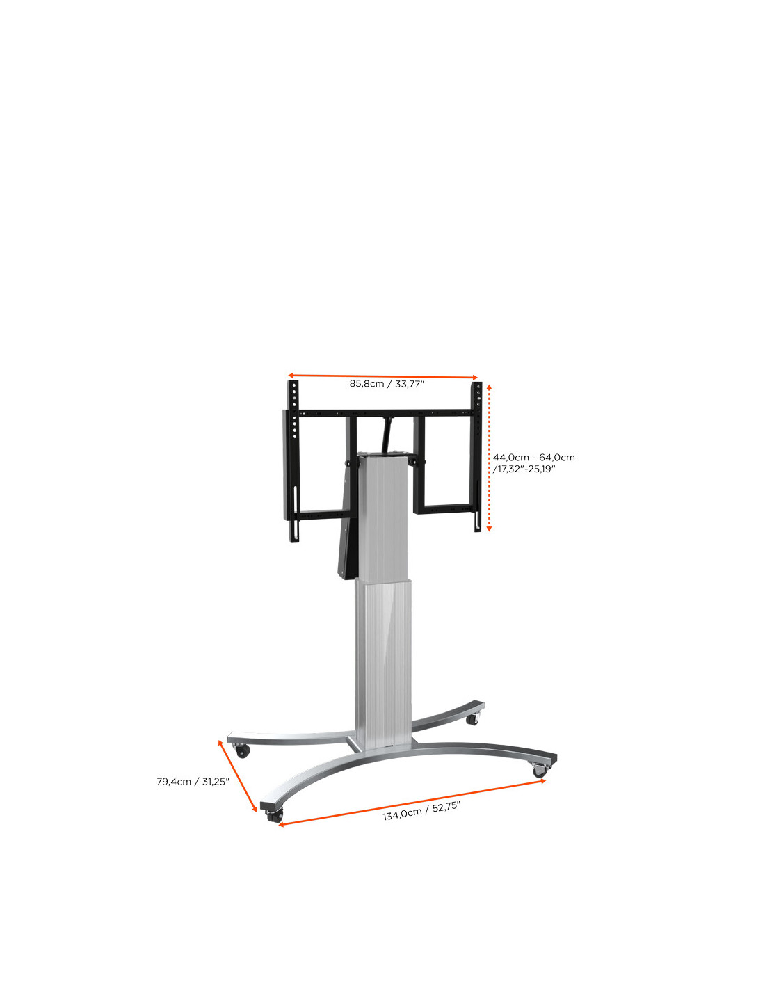 - Electrically height adjustable from 824 - 1324 (bottom to middle of display mount) Display mode