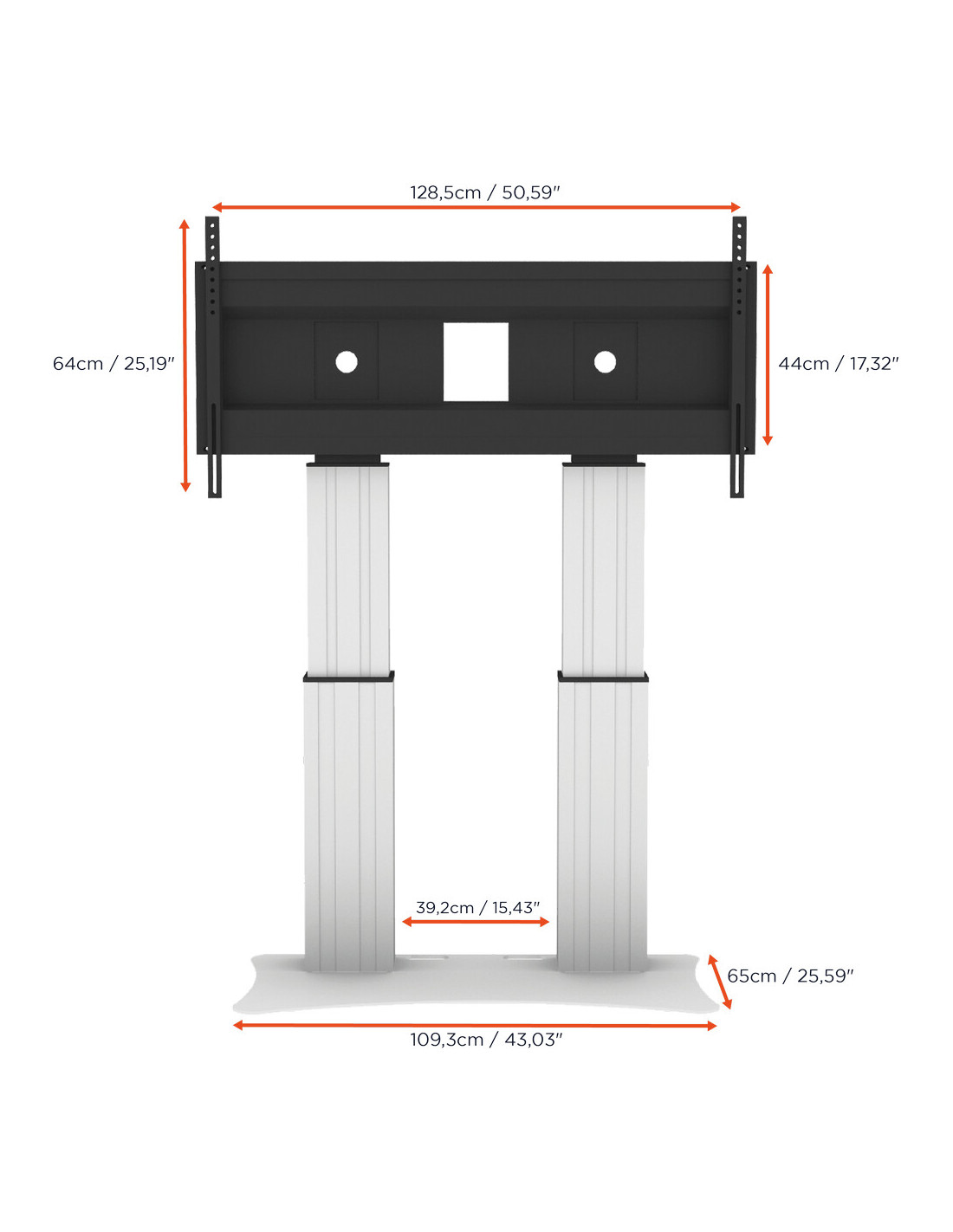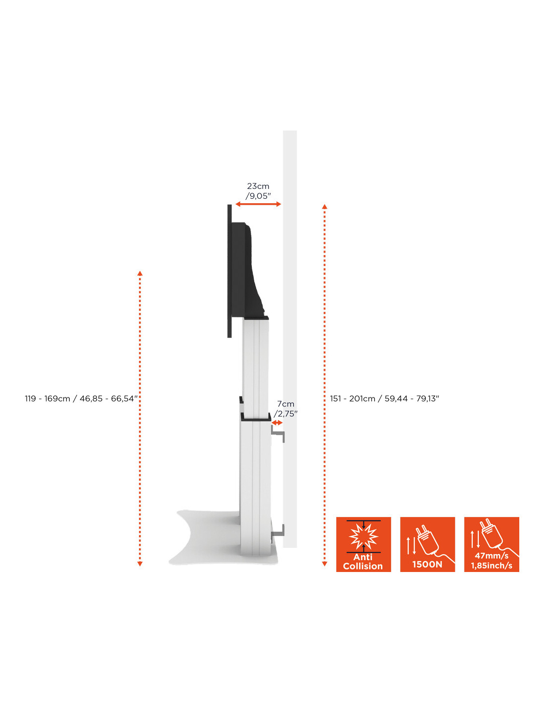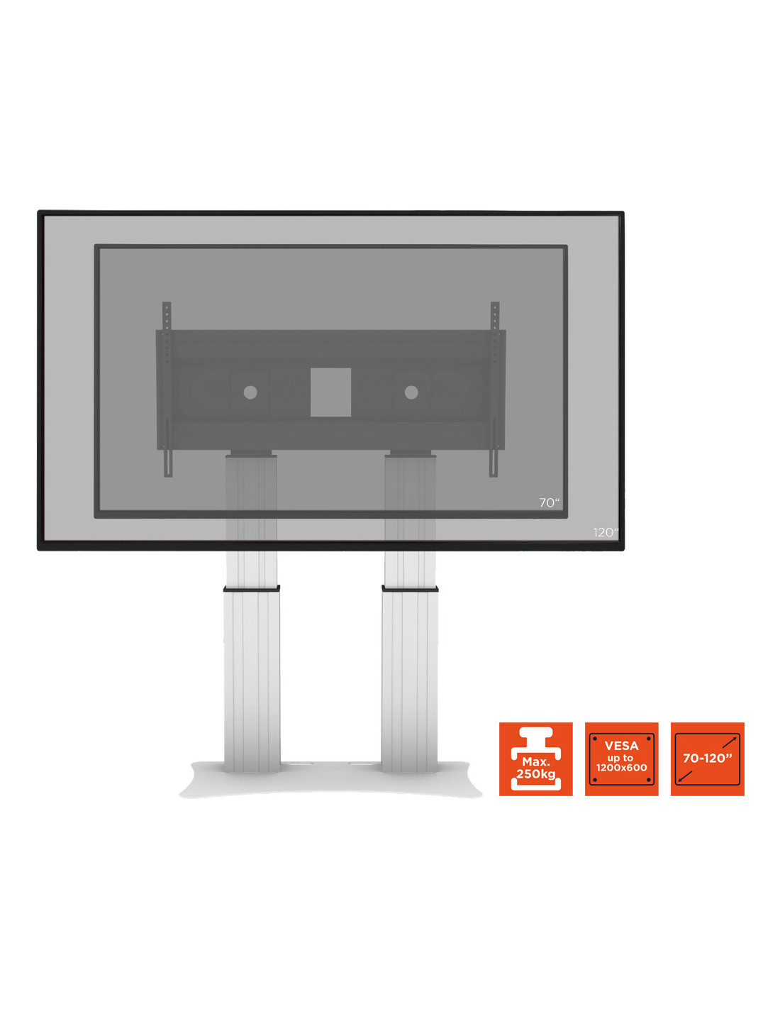 - Electrically height-adjustable from 1190 - 1690 mm (floor to centre of display holder)