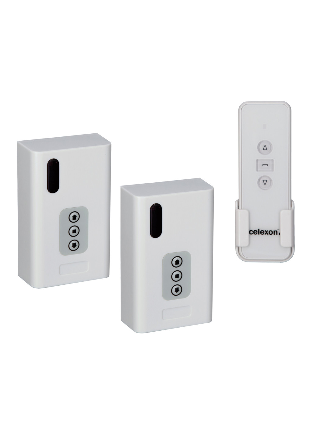With this 2-channel set you can control up to 2 electric screens or ceiling lifts of any celexon series. These receivers can also be taught-in with the 'celexon Professional radio trigger'. It is still possible to pair further 'celexon Professional radio remote controls' / 'celexon Professional radio trigger' with the receivers. (up to 20 transmitters per receiver)