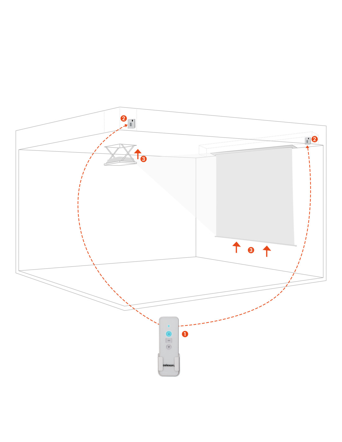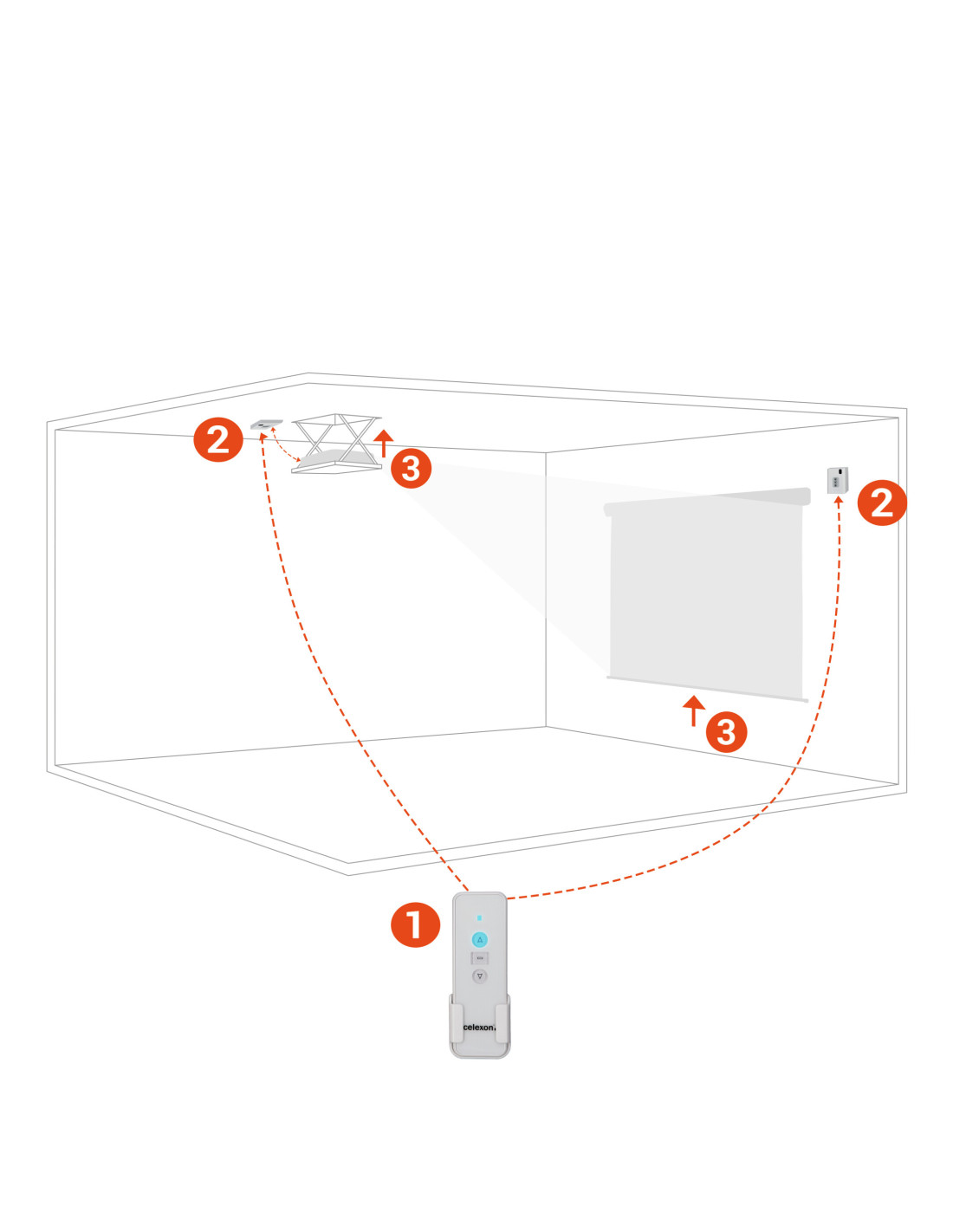 With the celexon Professional radio system you can control your electric screen or ceiling lift without transmission or reception interference, even though brickwork.