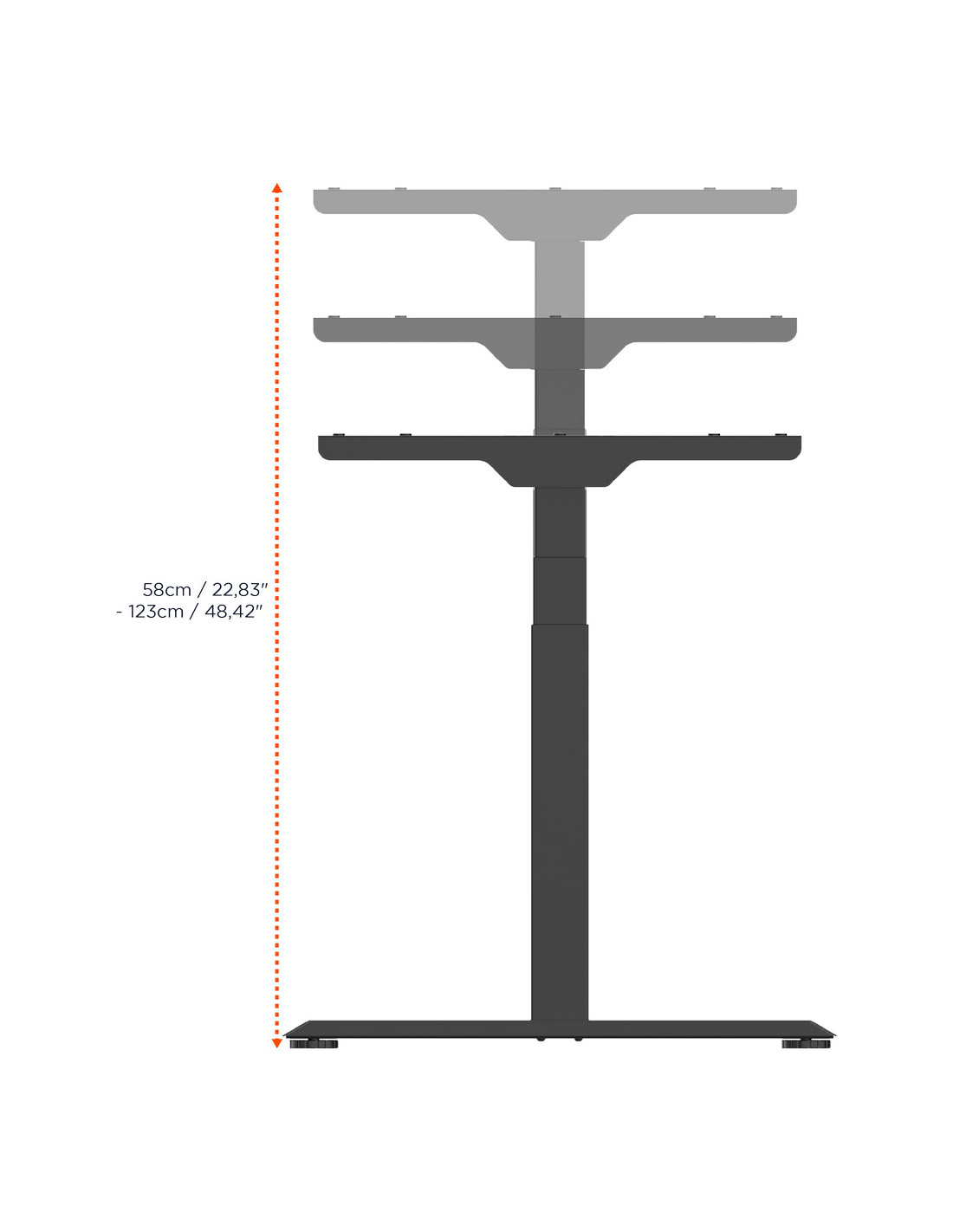 - Electrical infinitely variable height adjustment from 58 to 123 cm