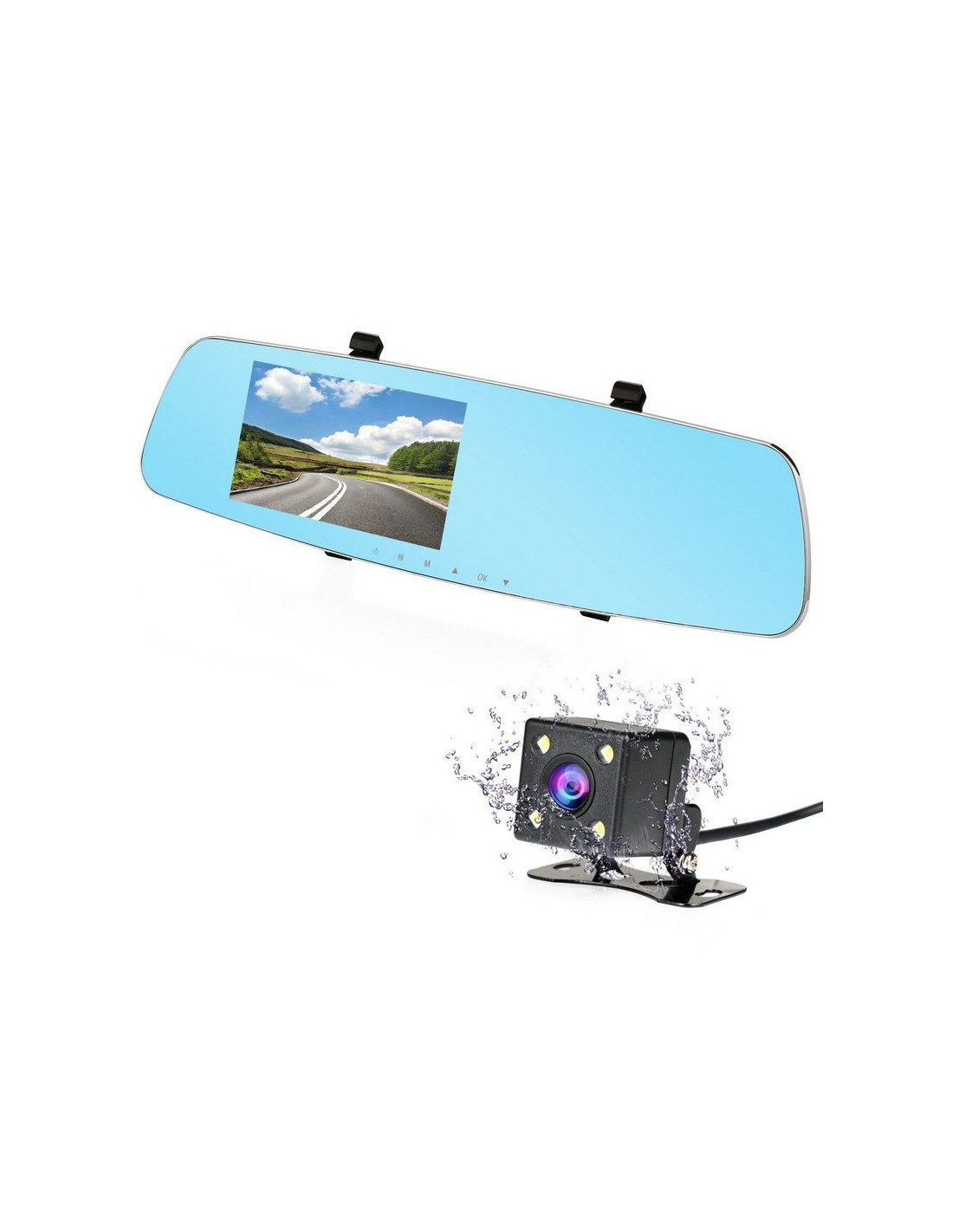 Видеорегистратор с мощен 4 ядрен процесор с камера за задно виждане, която се включва автоматично на дисплея при паркиране, както и постоянен запис пред и зад колата.