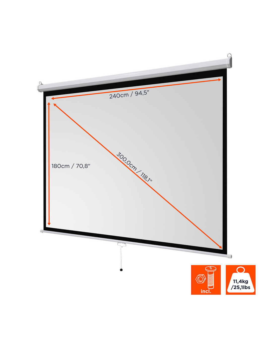 The manual screen is suitable for wall and ceiling installation and is ready to be used once installed.