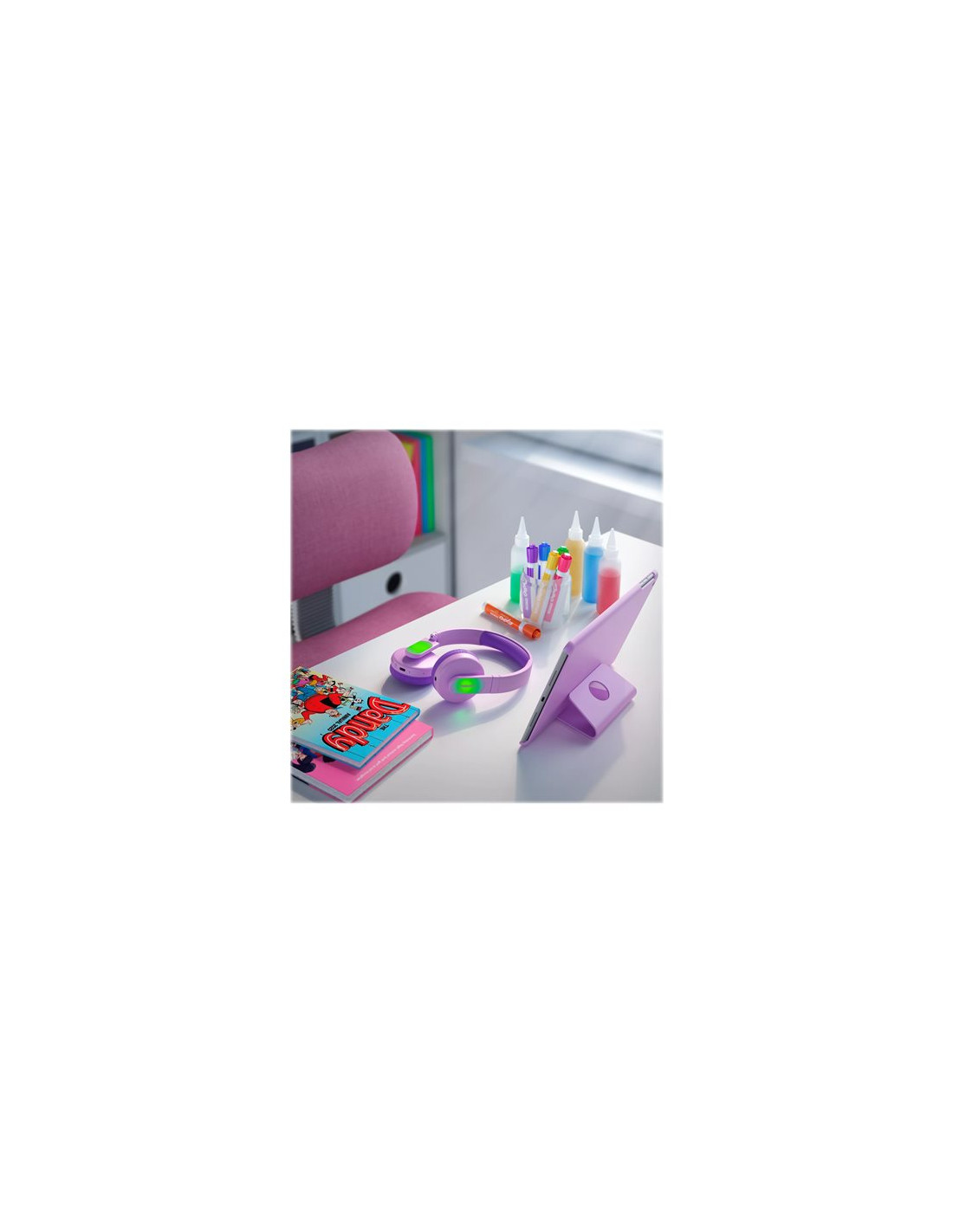 Soft ear-cup cushions and a soft headband cushion keep the kids comfortable-whether they're listening to music or watching their favorite YouTubers. The flexible headband adjusts easily.