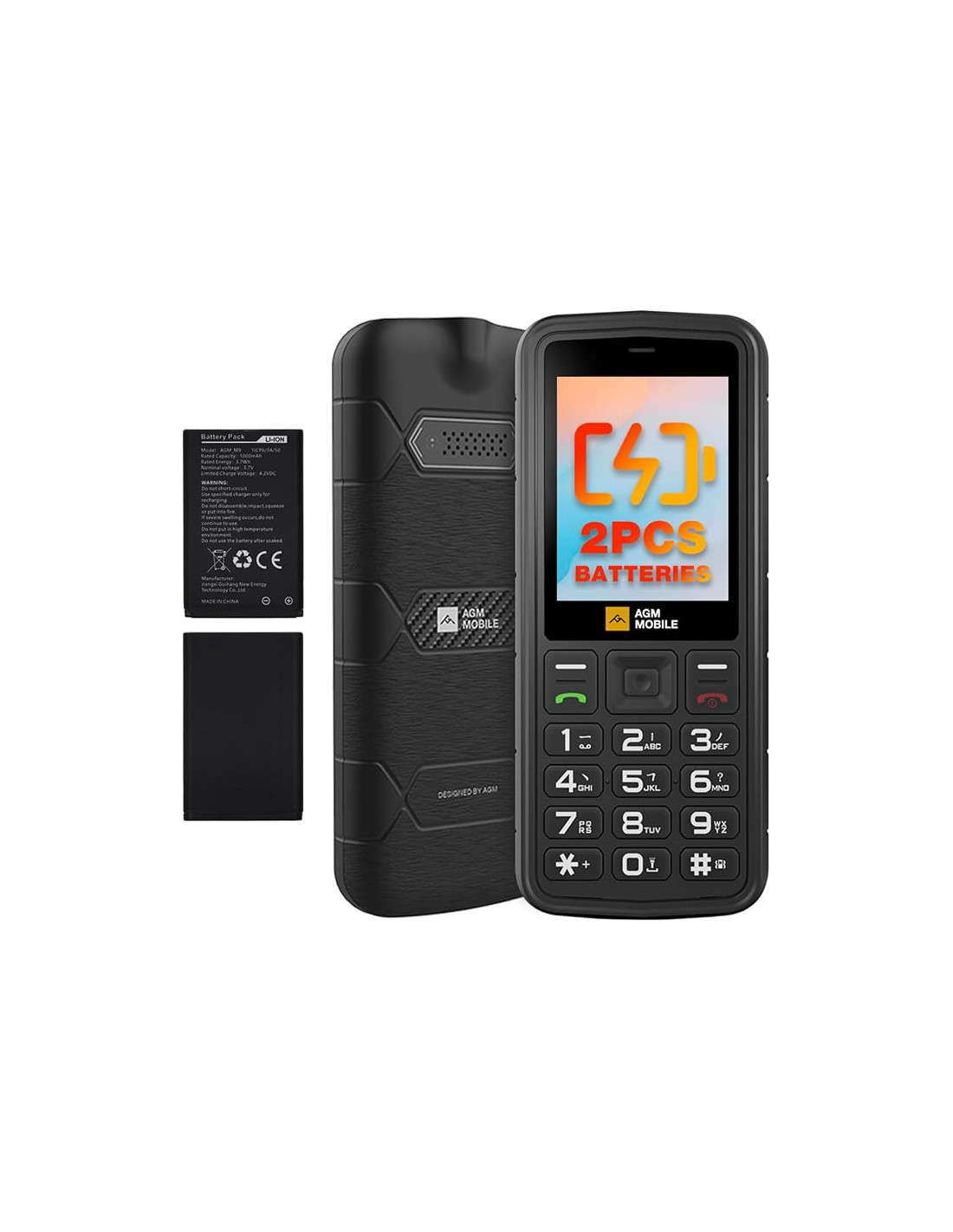 Силен звук, големи шрифтове, големи бутони – проектиран за простота и лекота на използване: AGM M9 е здрав, издръжлив базов телефон, създаден за тези, които искат да се откъснат от смартфоните и да се насладят на простотата. Без социални приложения, той позволява на потребителите да се съсредоточат върху основни функции. Със силен и кристално ясен звук при разговори, големи и лесни за четене шрифтове и големи бутони, които са лесни за натискане, този телефон осигурява лесно потребителско изживяване. (Поддържа T9 въвеждане на текст.)